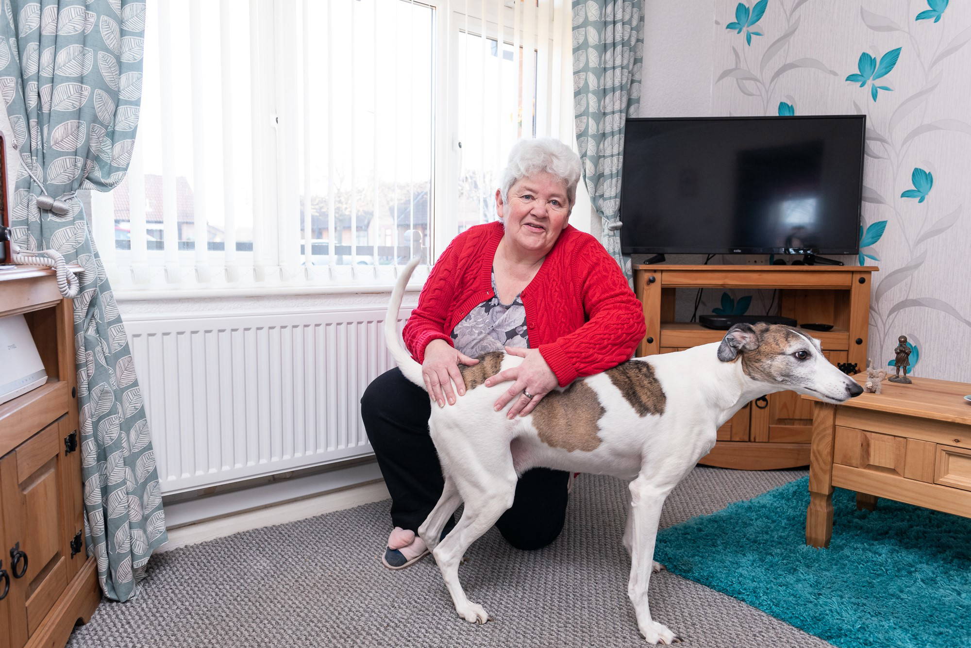 Sharon and Buddy, the whippet are residents at Arden Court, and kindly volunteered to have a heating upgrade, to replace her gas heating system with an energy efficient air source heat pump and rooftop solar panels.