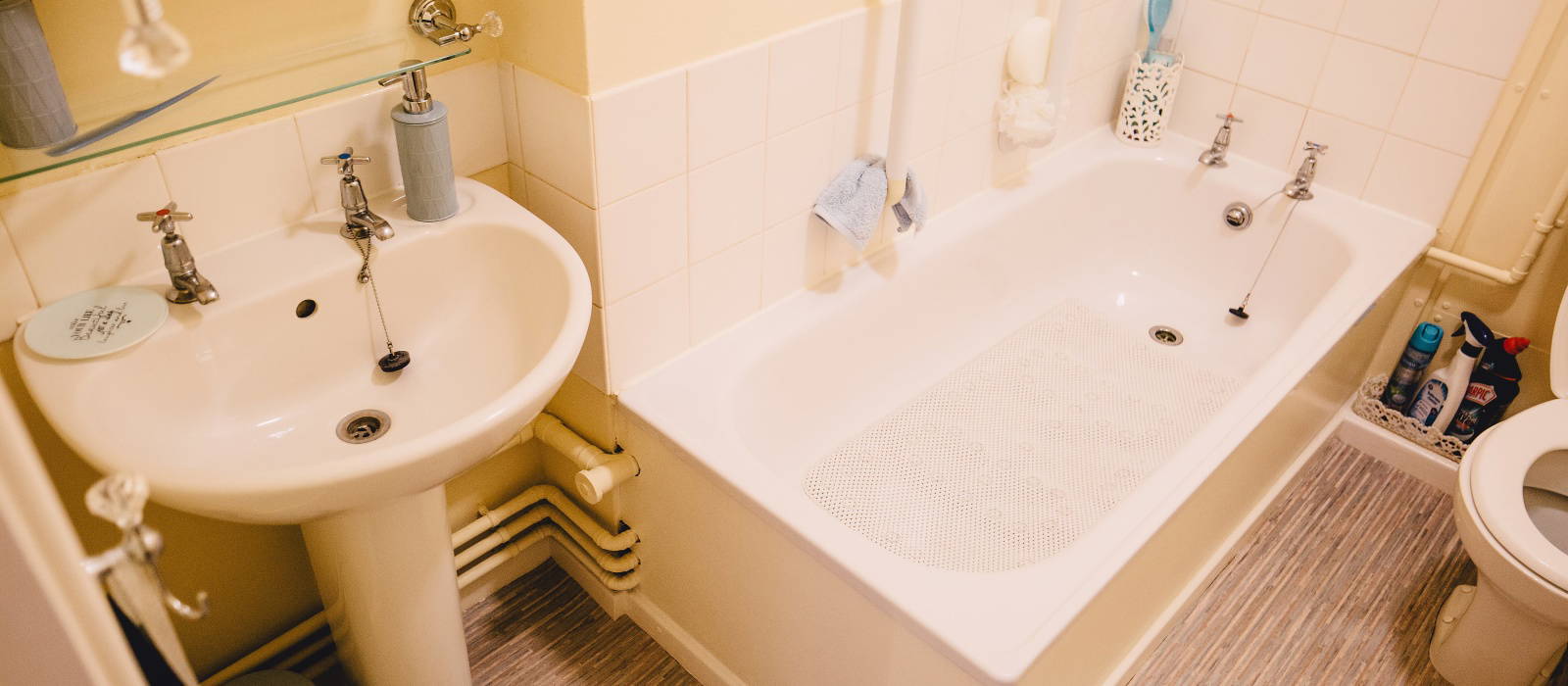 • Bathroom with either a low level bath or level access shower